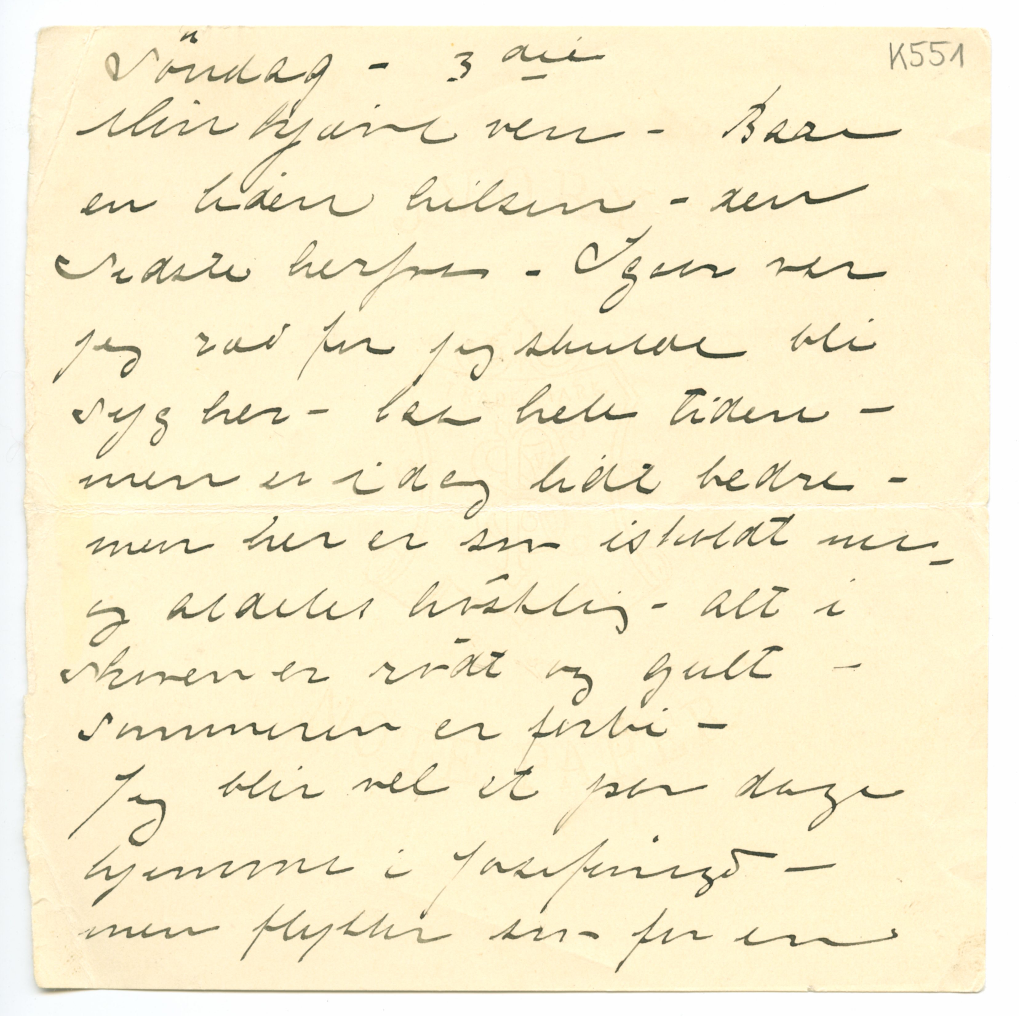 MM K 551, Munchmuseet. Datert 03.[??].18[??]. Brev fra Tulla Larsen.