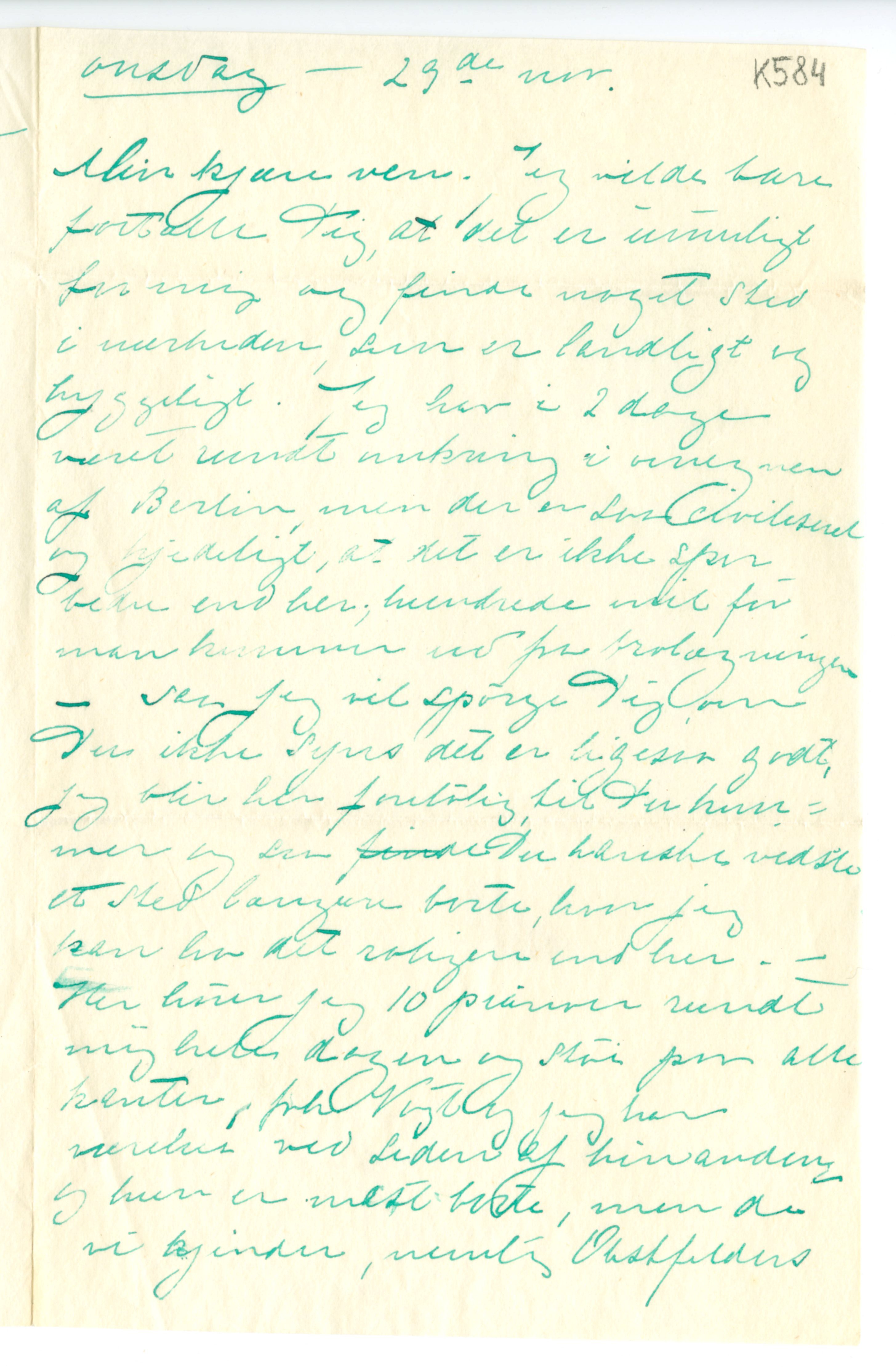 MM K 584, Munchmuseet. Datert 29.11.18[??]. Brev fra Tulla Larsen.
