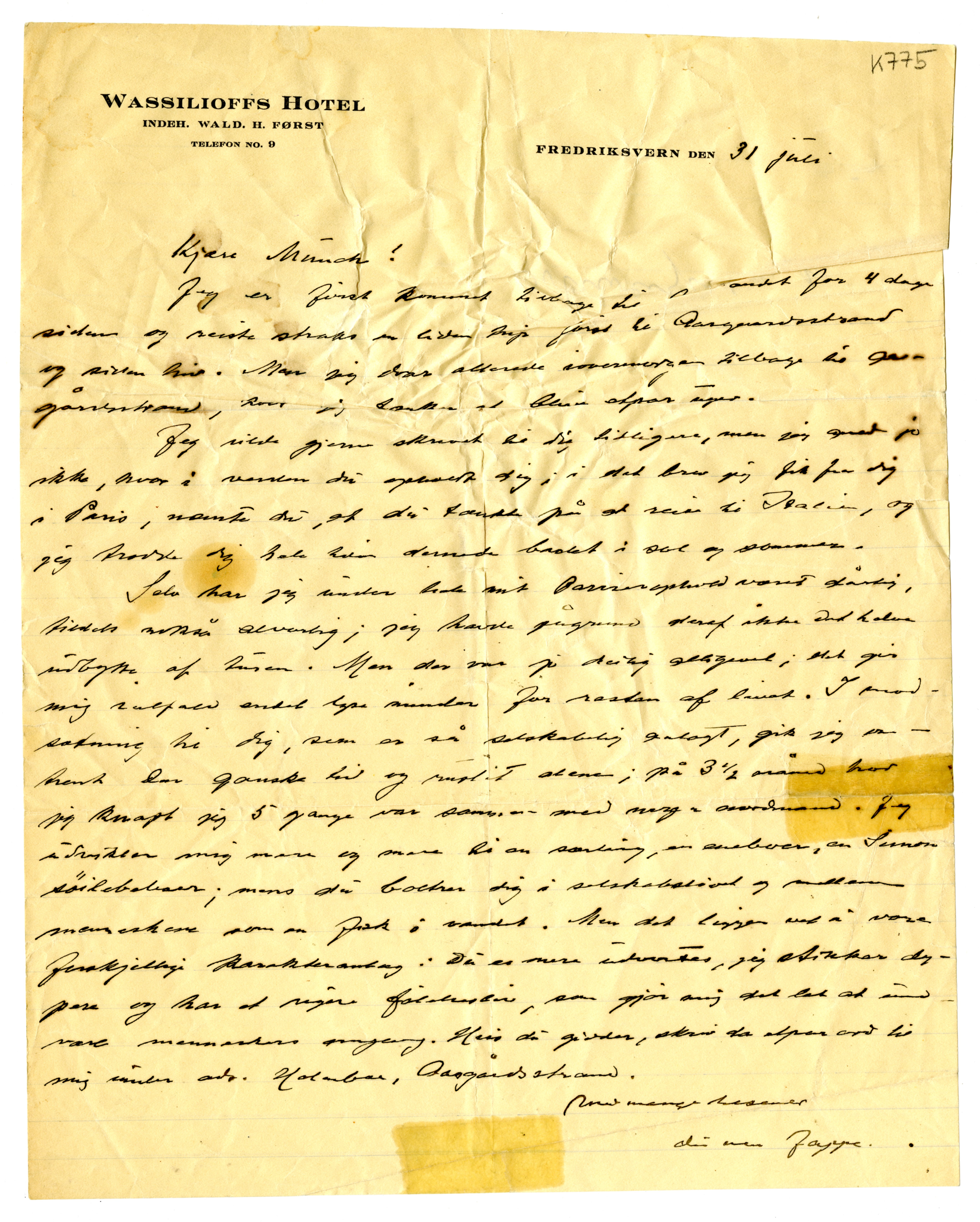 MM K 775, Munchmuseet. Datert 31.07.1923. Brev fra Jappe Nilssen.
