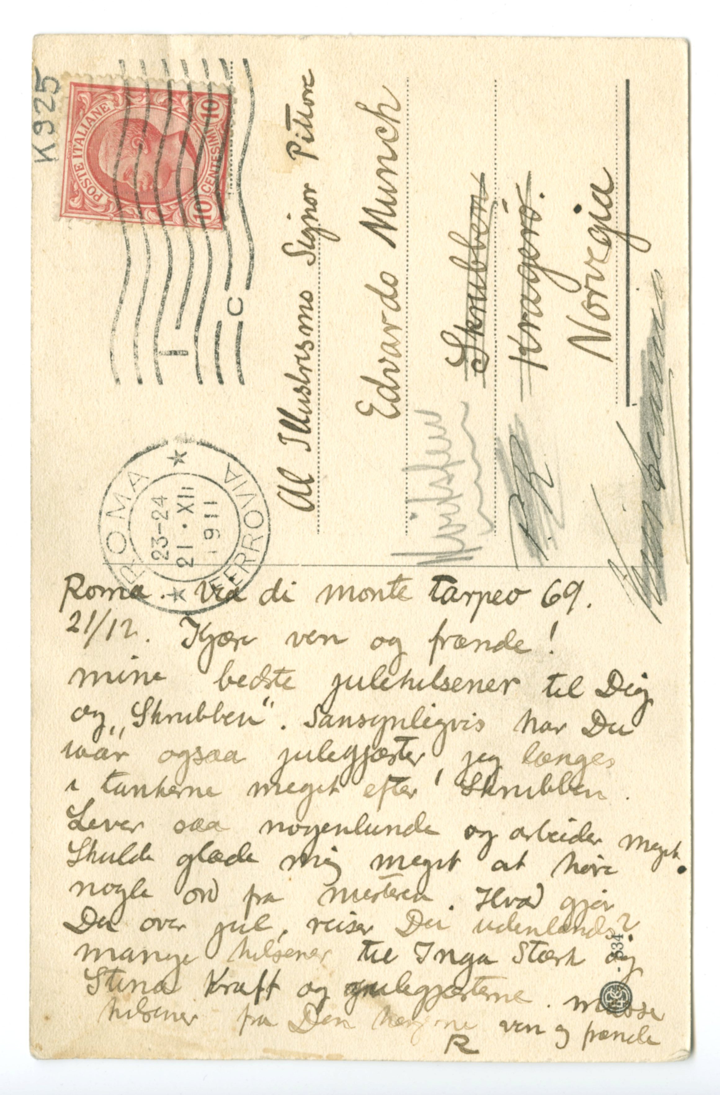 MM K 925, Munchmuseet. Datert 21.12.1911. Brev fra Ludvig Ravensberg.