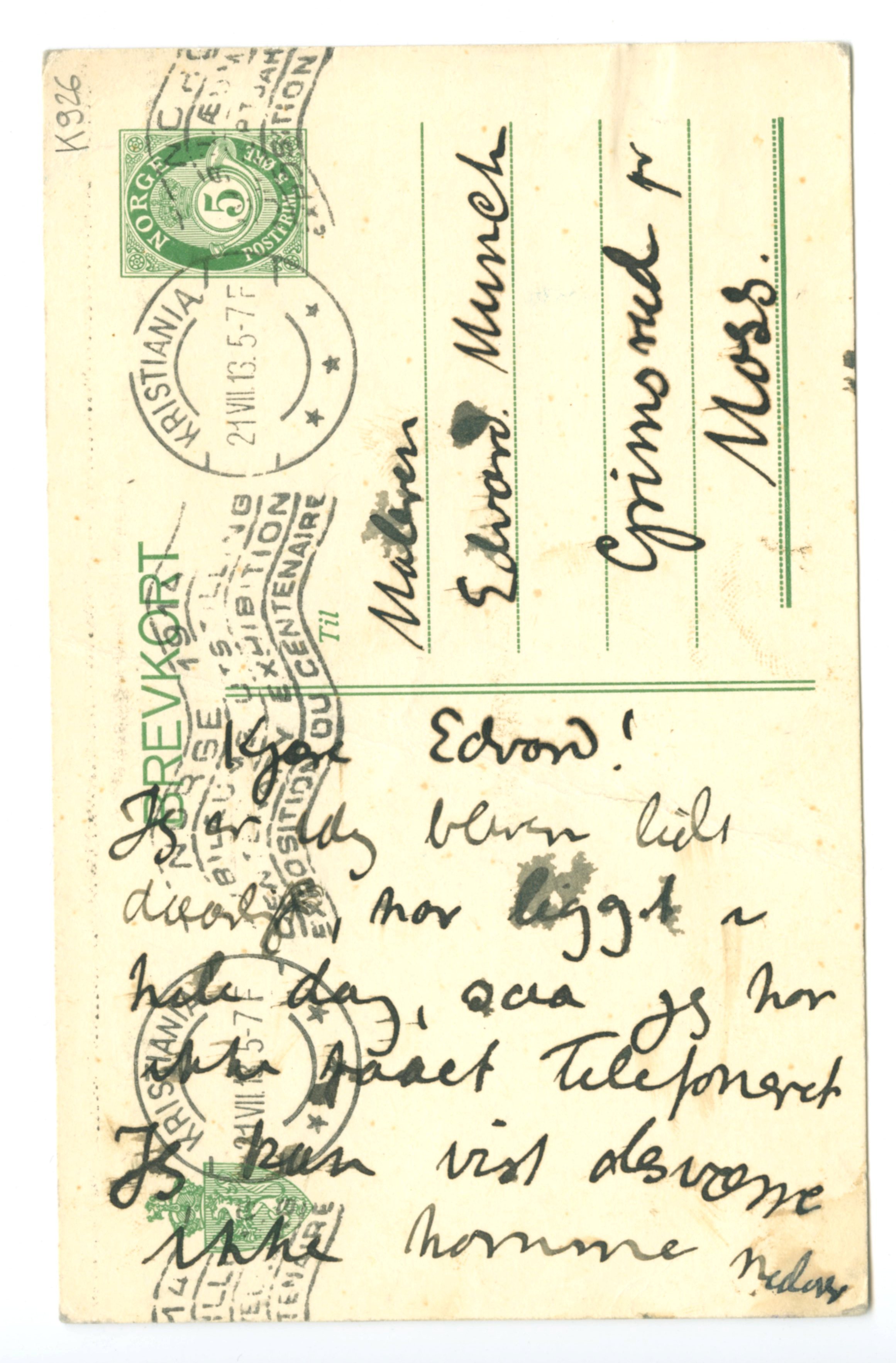 MM K 926, Munchmuseet. Datert 21.07.1913. Brev fra Ludvig Ravensberg.