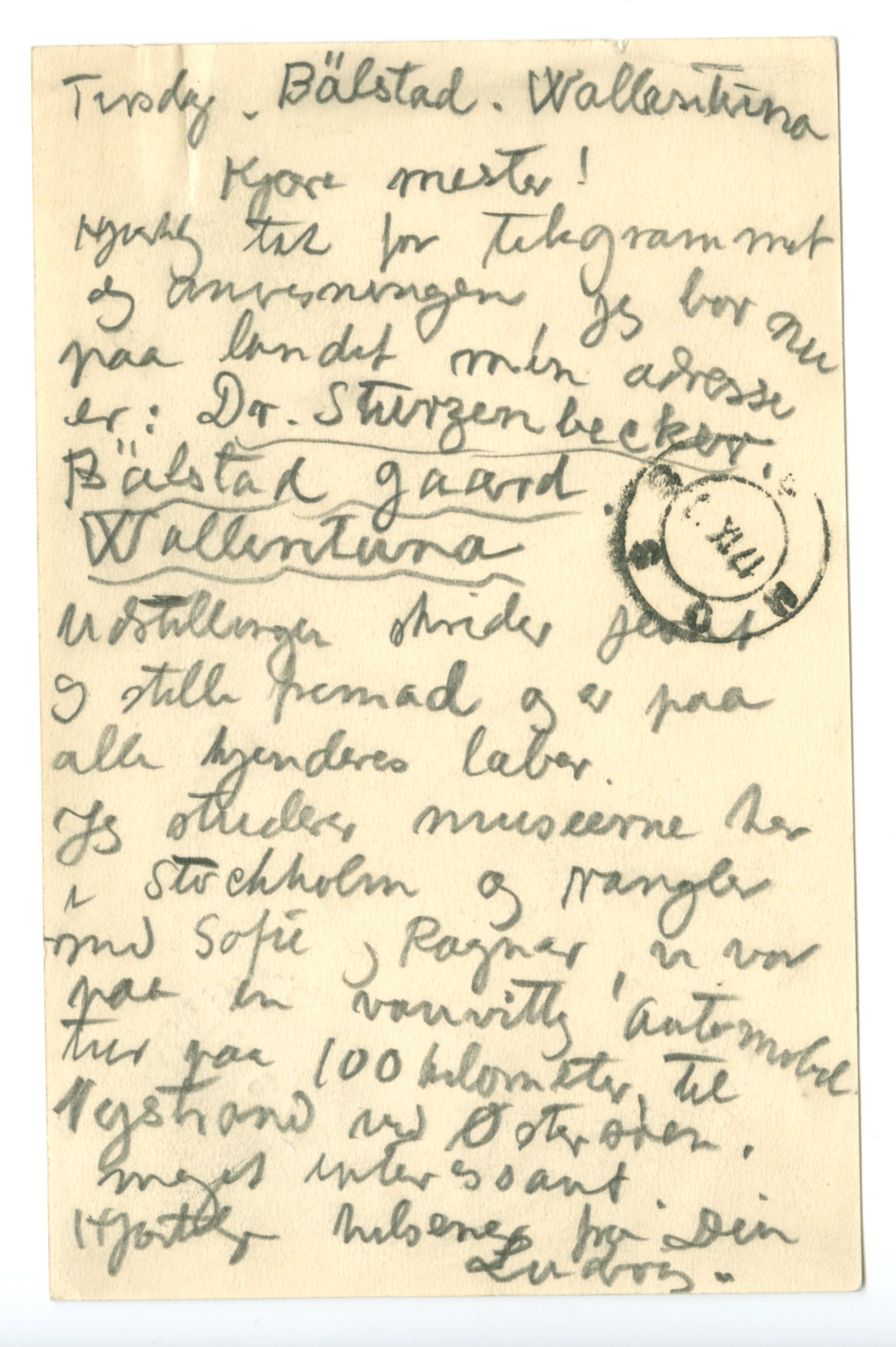 MM K 927, Munchmuseet. Datert 16.09.1913. Brev fra Ludvig Ravensberg.
