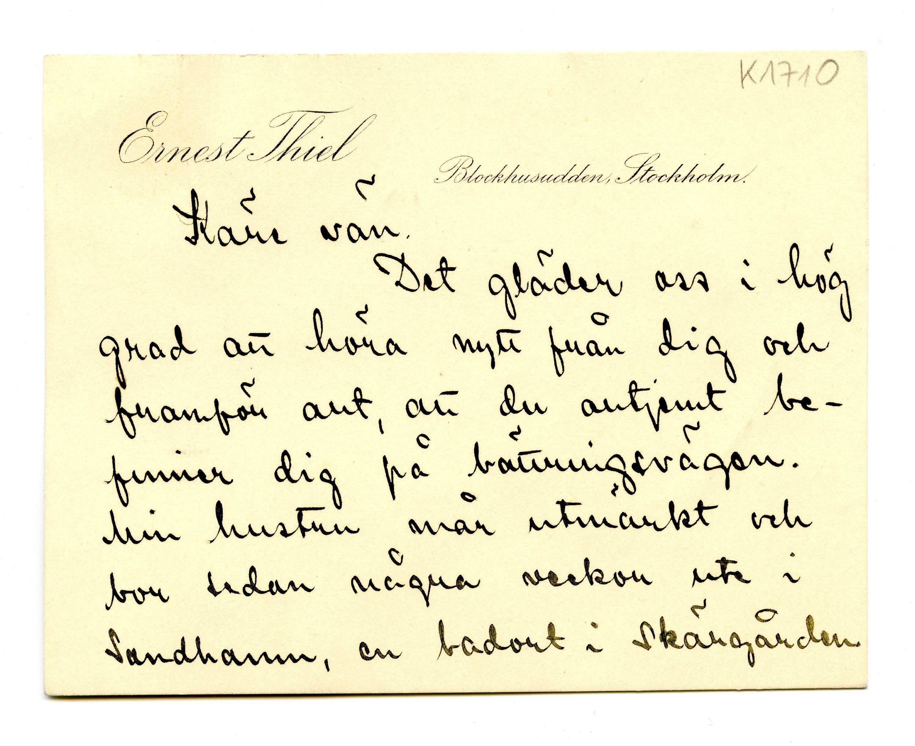 MM K 1710, Munchmuseet. Ikke datert. Brev fra Ernest Thiel.