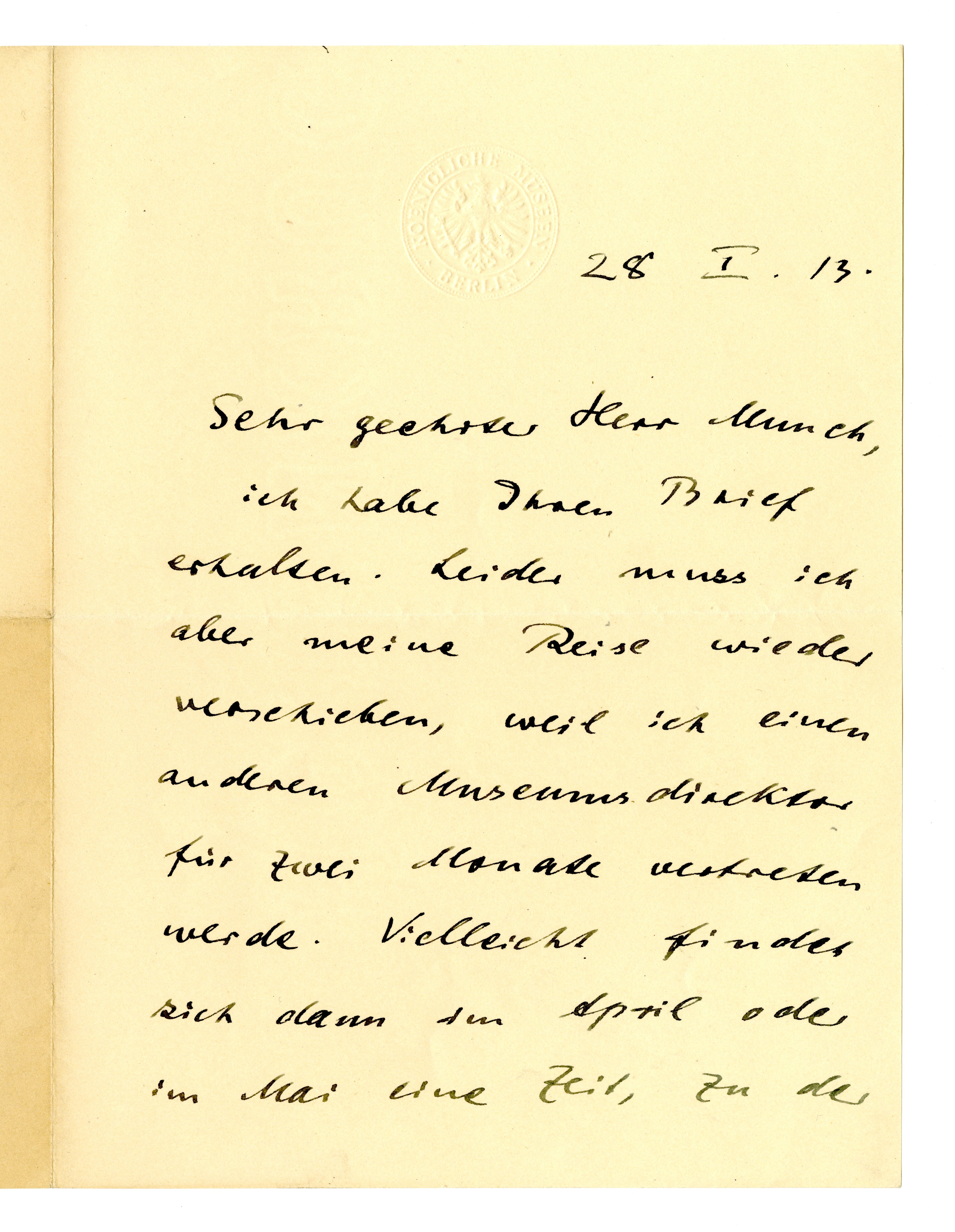 MM K 2260, Munchmuseet. Datert 28.01.1913. Brev fra Curt Glaser.
