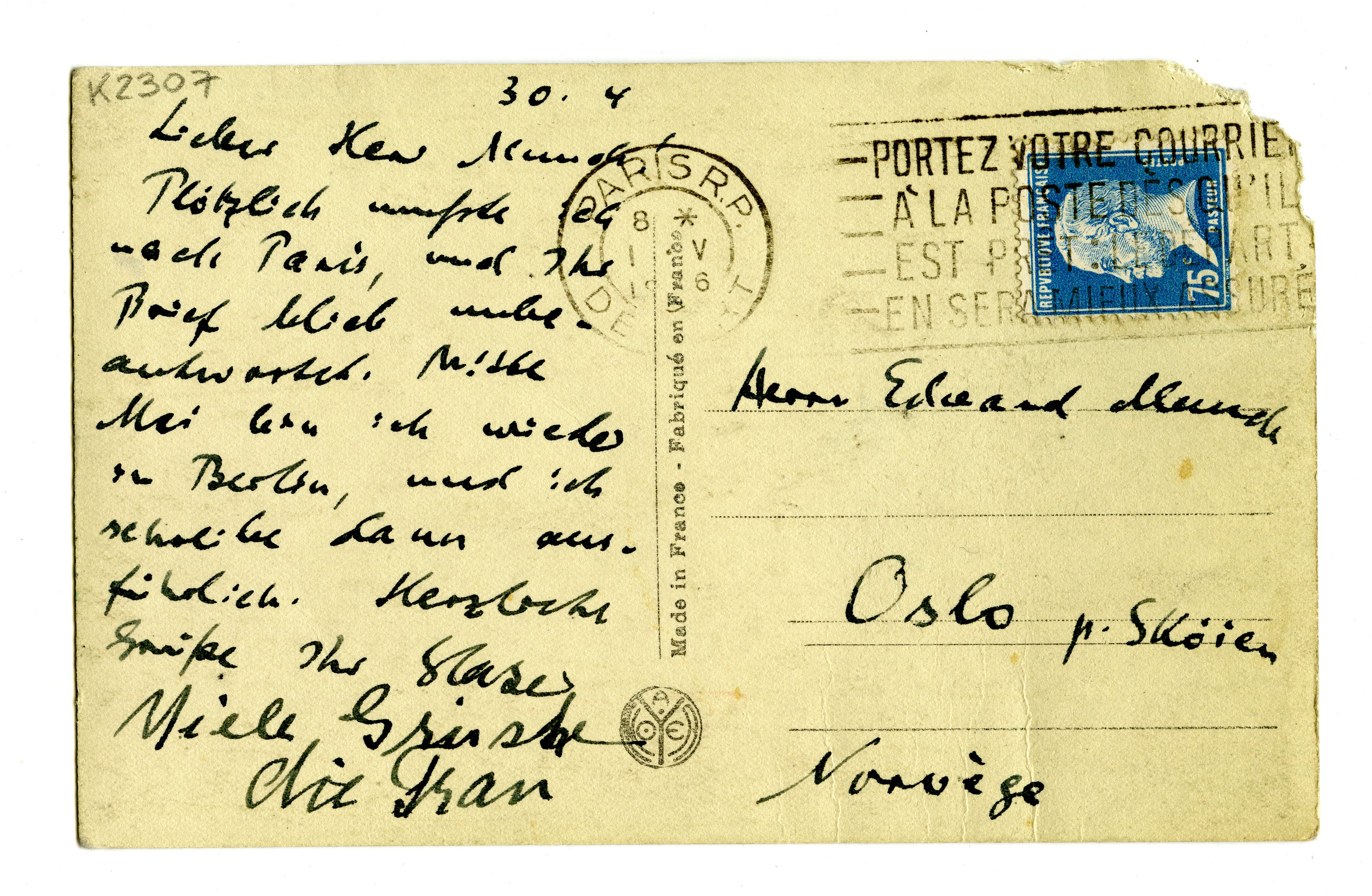 MM K 2307, Munchmuseet. Datert 30.04.[19??]. Brev fra Curt Glaser.