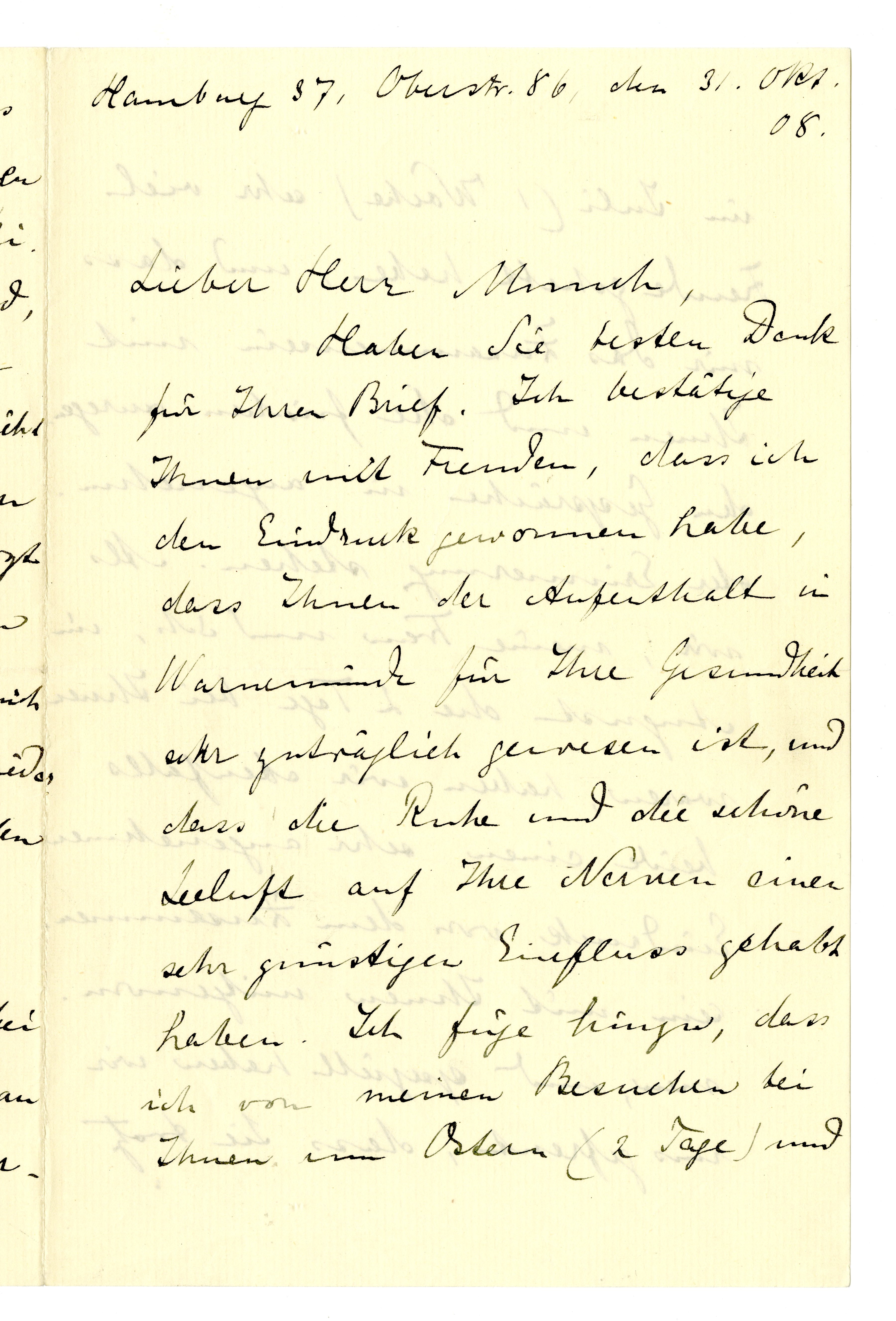 Hamburg 37, Oberstr.6, den 31. Okt.