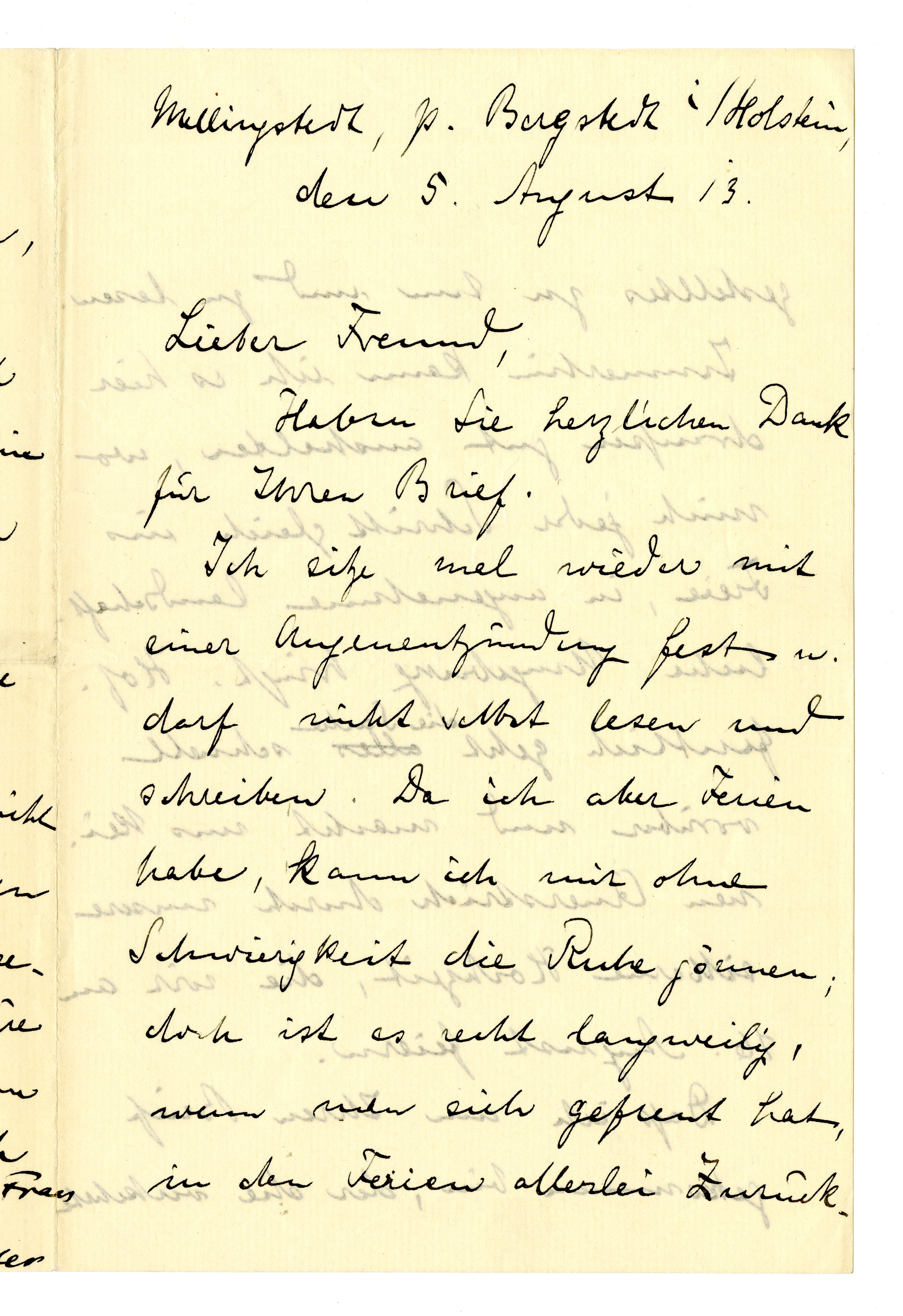 MM K 3215, Munchmuseet. Datert 05.08.1913. Brev fra Gustav Schiefler.