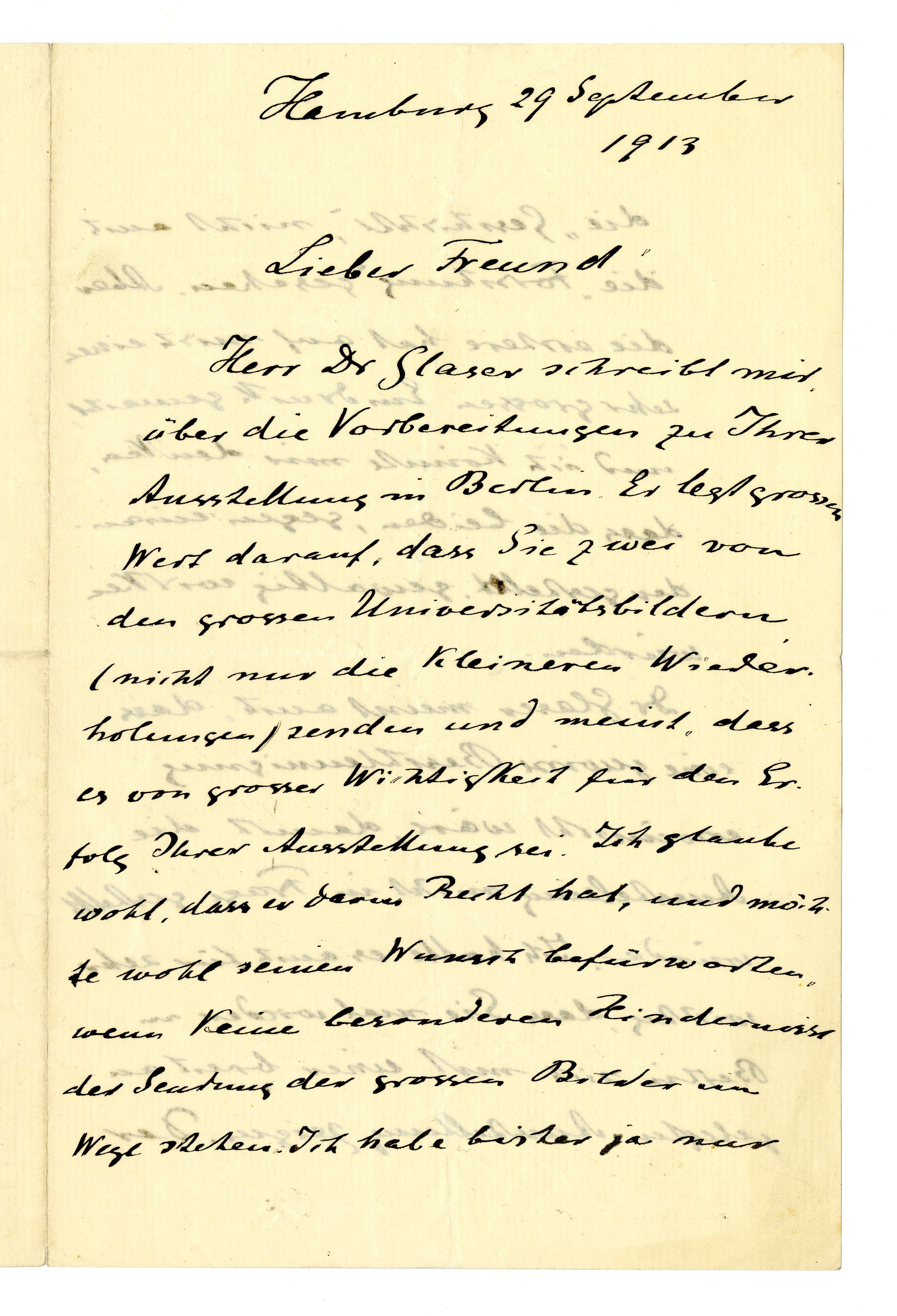 MM K 3218, Munchmuseet. Datert 29.09.1913. Brev fra Gustav Schiefler.