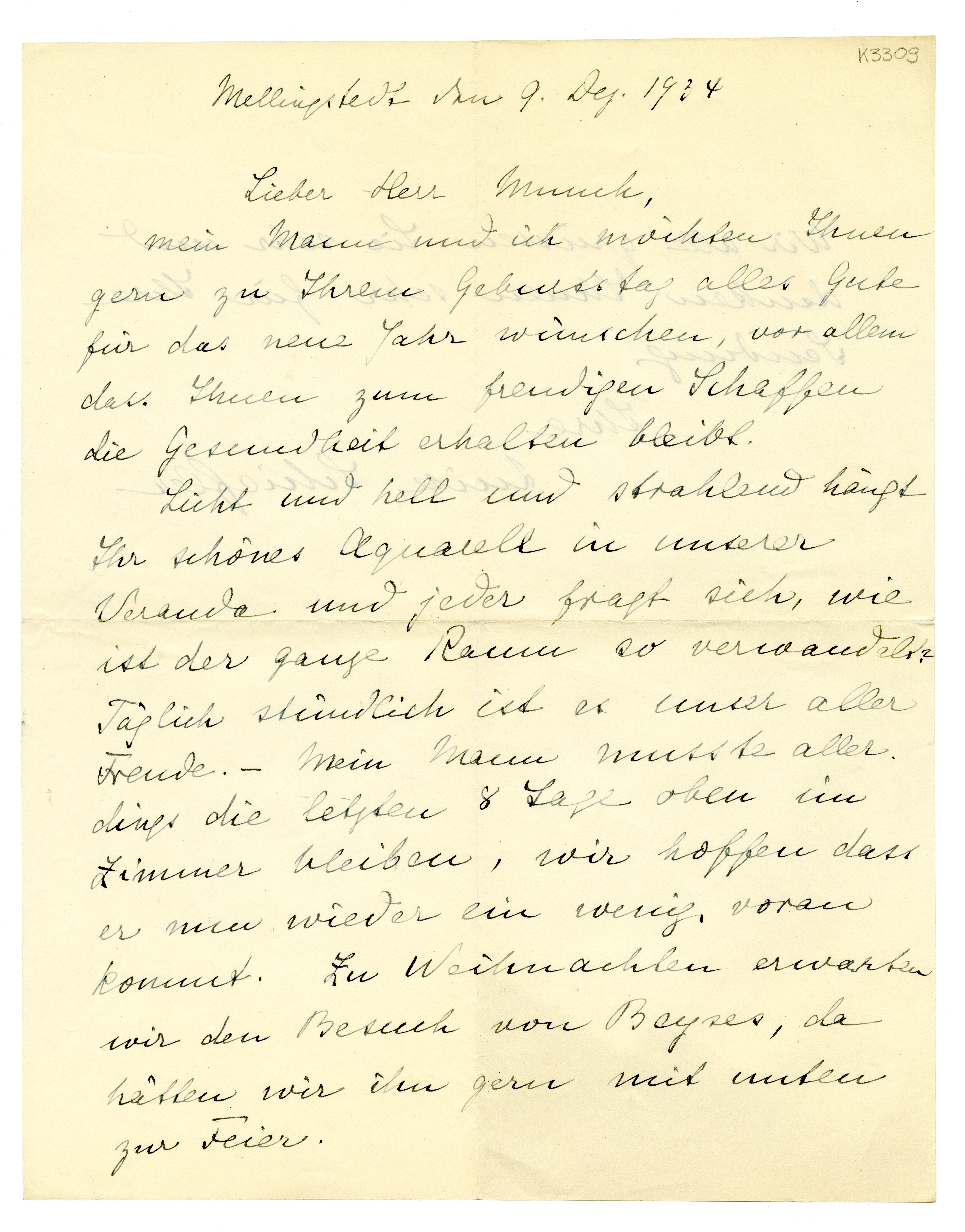 MM K 3309, Munchmuseet. Datert 09.12.1934. Brev fra Luise Schiefler.