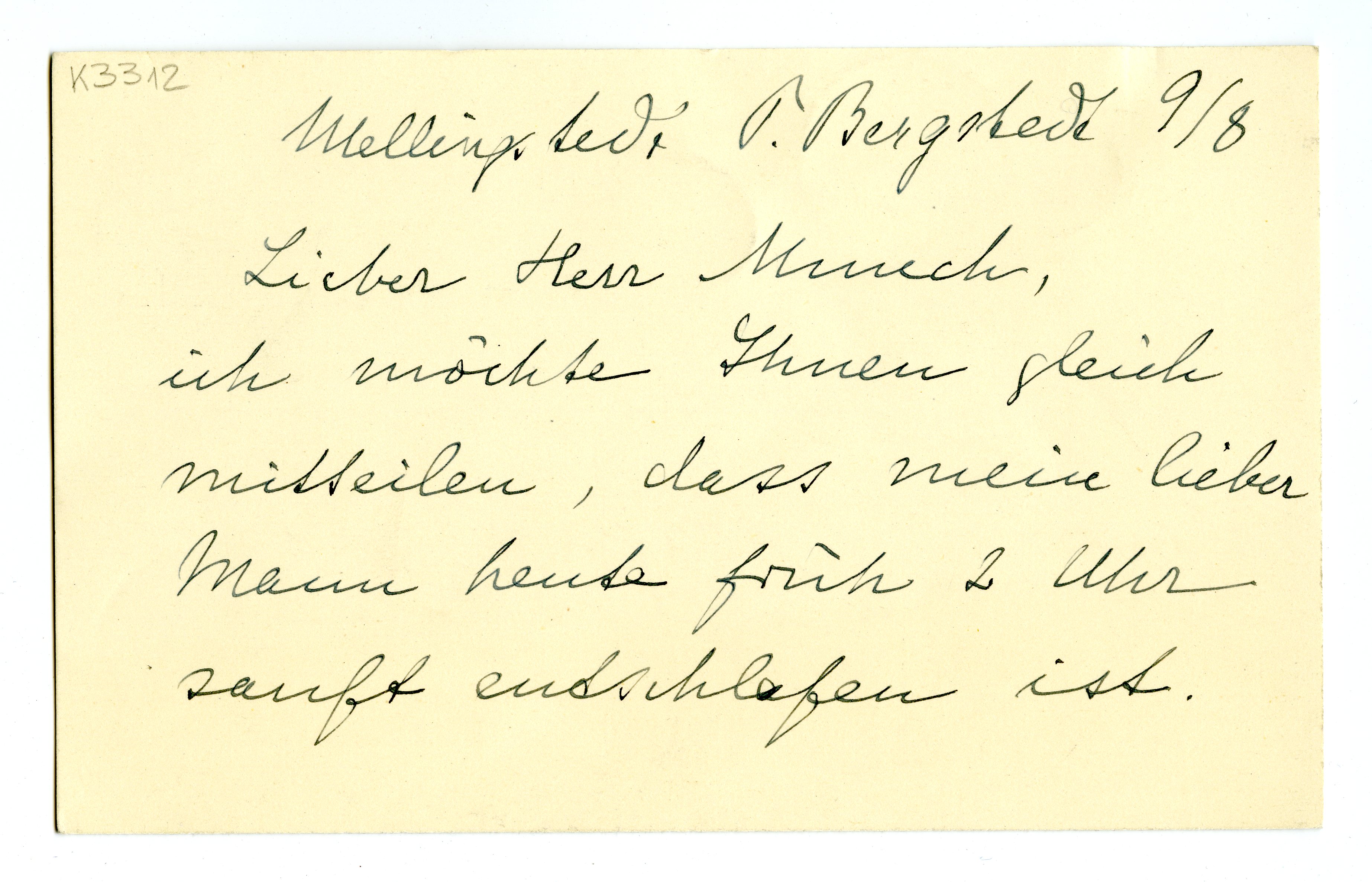 MM K 3312, Munchmuseet. Datert 09.08.[????]. Brev fra Luise Schiefler.