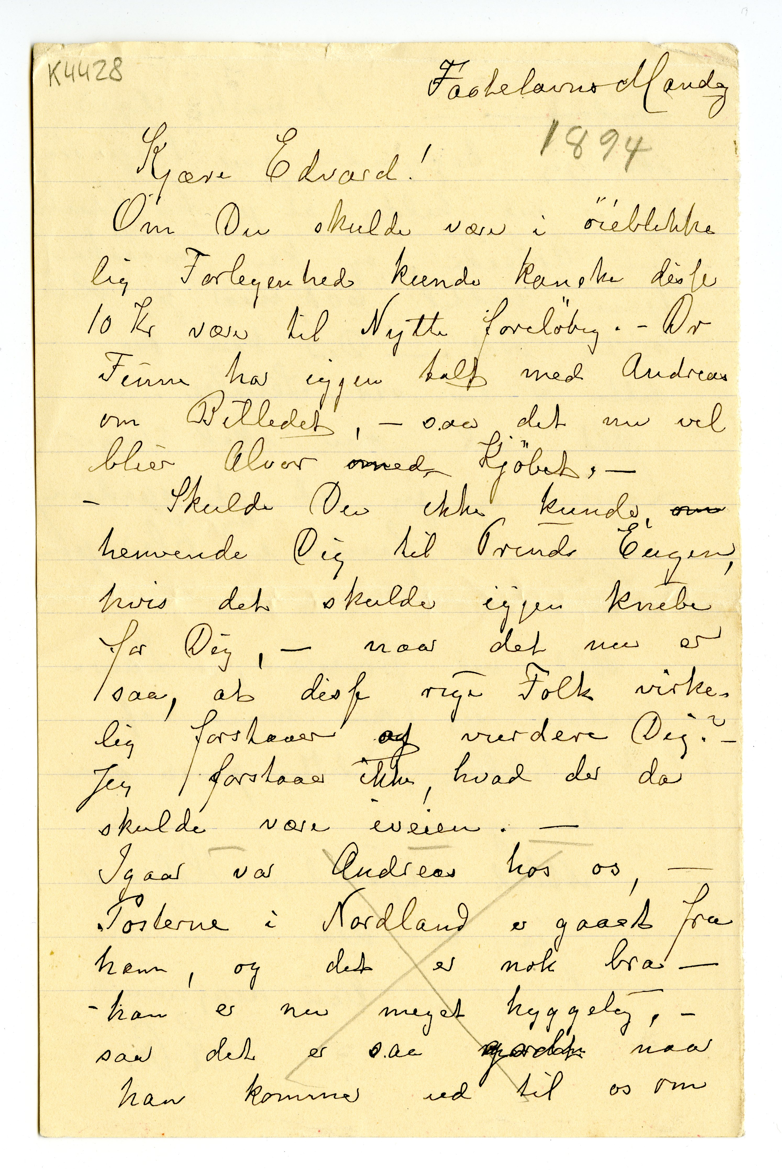 MM K 4428, Munchmuseet. Datert 05.02.1894. Brev fra Karen Bjølstad.