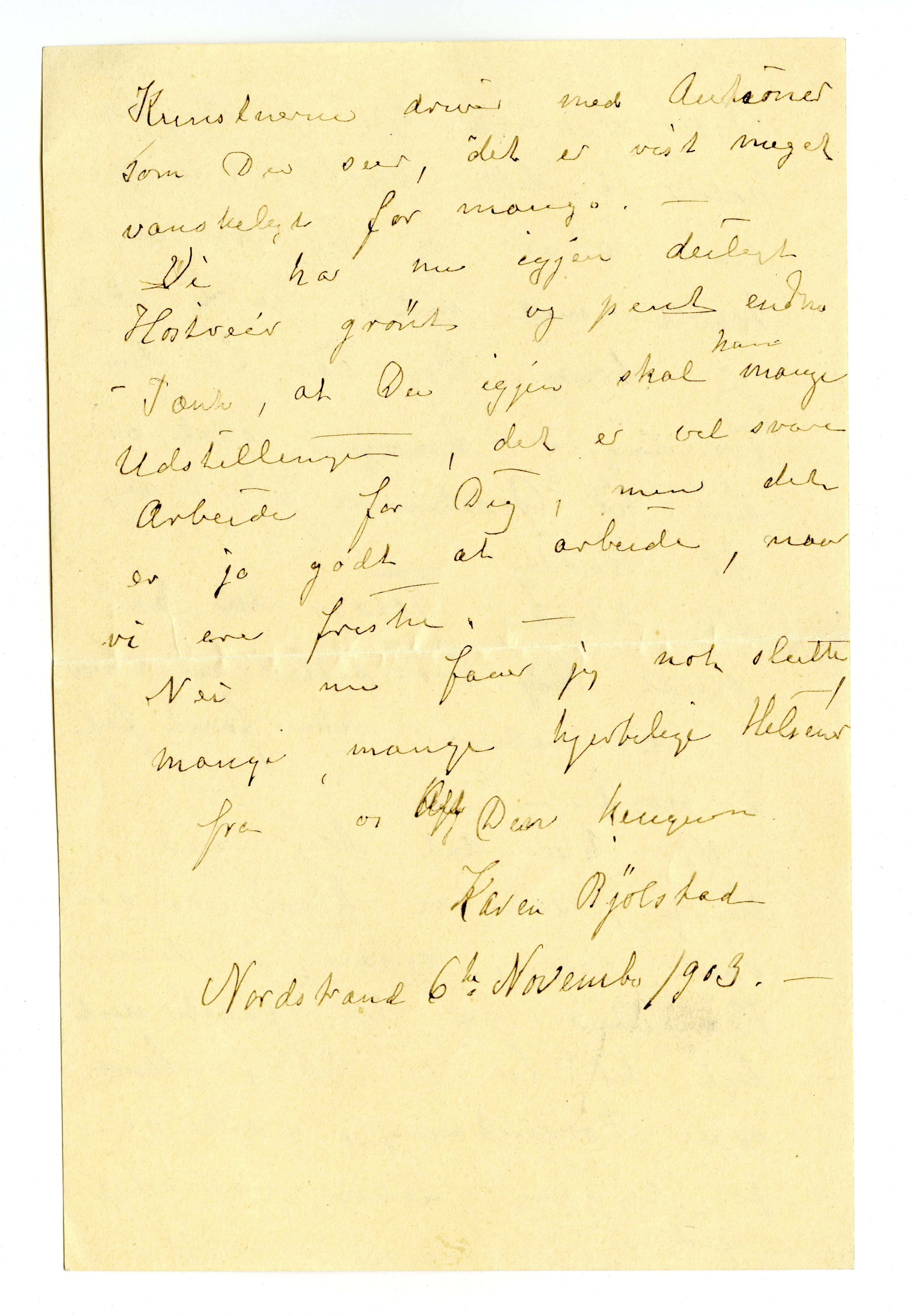 MM K 4495, Munchmuseet. Datert 06.11.1903. Brev fra Karen Bjølstad.