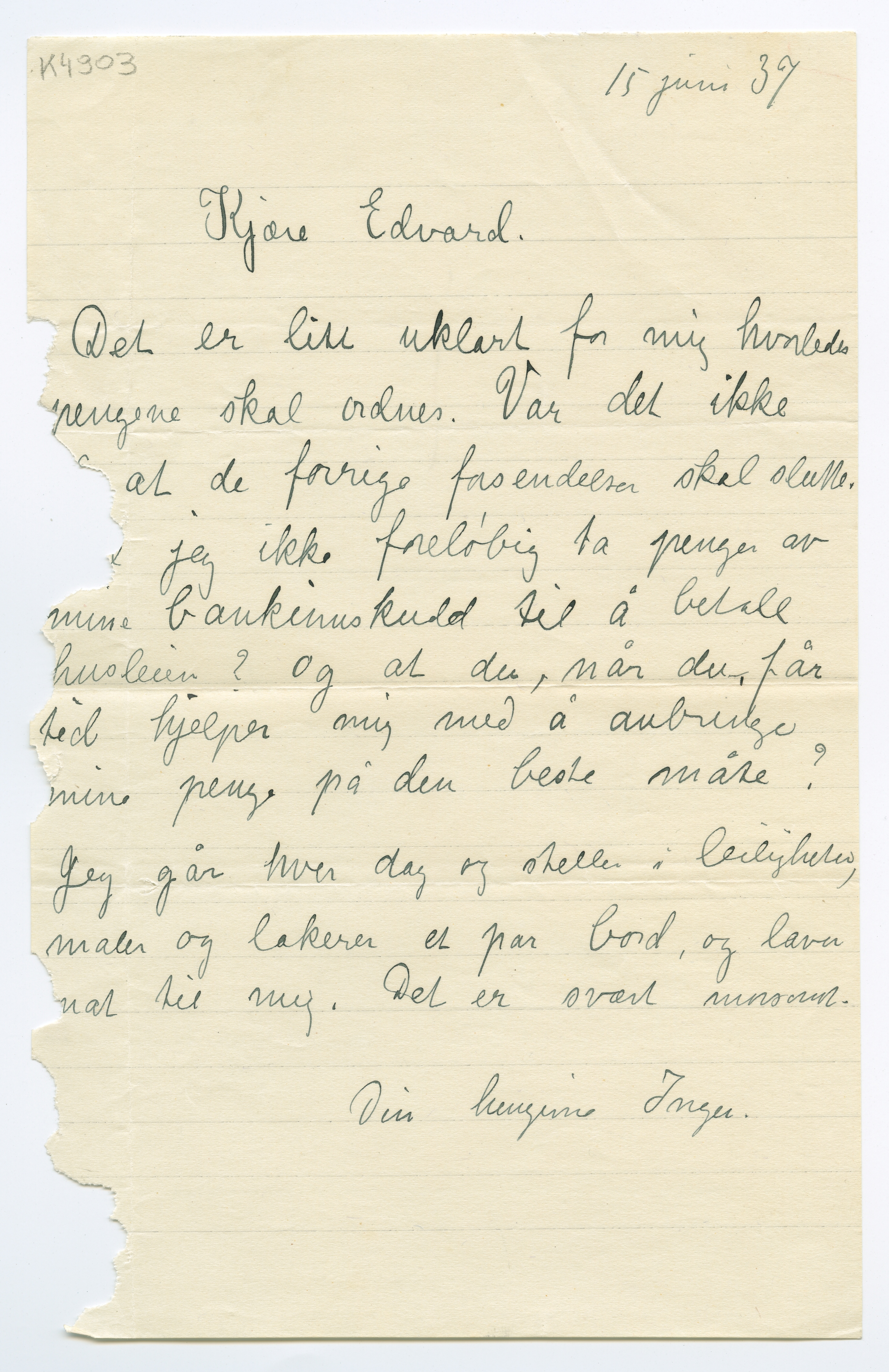 MM K 4903, Munchmuseet. Datert 15.06.1937. Brev fra Inger Munch.
