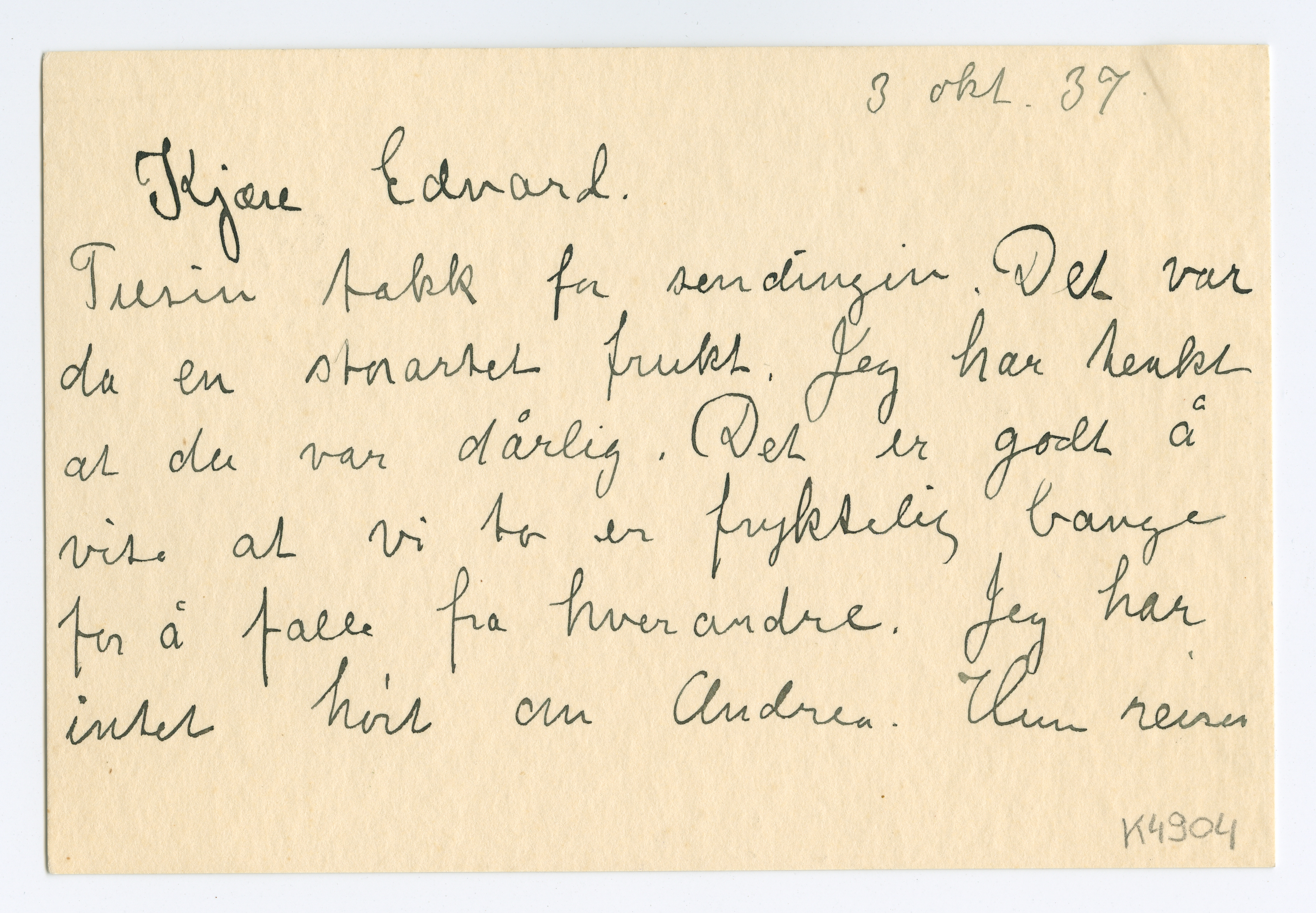 MM K 4904, Munchmuseet. Datert 03.10.1937. Brev fra Inger Munch.