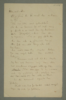 «Vil De gjøre mig den tjeneste{og}at gjøreOlaf Schou et forslag som jeg selv ikke tør komme med – Jeg sender ham foruden det syge barn to andre større billeder, – en … som jeg{ … }gjerne{skal}vilde han skulde beholde – indtil disse blir senere engang skulde blive solgte for en større pris{–}; –{ … }Jeg men{er}te at han da skulde trække af for sig hvad han nu låner mig – Gjør dette så er De snil på en»