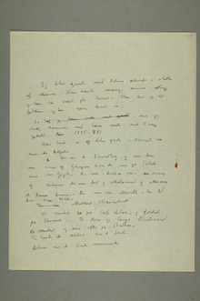 «Kunst er det motsatte af natur, Et kunstværk kommer blot fra menneskets indre – Kunst er billedets form tilblivet gjennem { … }Menneskets nerver – hjerte – hjerne – øie Kunst er menneskets trang til krystalisation Naturen er det evig store rike hvorf{ … }ra kunsten får sin næring. – Naturen er ikke alene det for øiet synlige – de{t}n er osså sjælens indre billeder –på øbilleder paa øiets bakside –»