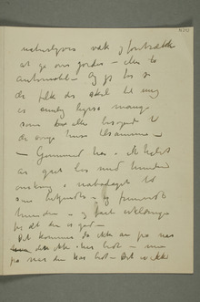 «Det er vistnok ikke meget godt medfrfisket nordpå efter hva jeg læser aviserne – Forsåvidt stemmer det med detAndreafortæller i sit sidste brev, hvor hun fortæller at hun forat sparestelhar opsagt piken og selv steller hele huset med Ku og gris. – Jeg tror nu ikke så ganske på alt hva hun sier da jeg har erfaring for at hun ikke er så nøie med sandheten – Det mærket jeg da hunfortæller fortalte mig at Du havde skrevet til hende at jeg var villig til at betale for guttene –»