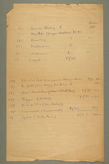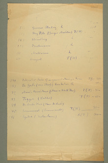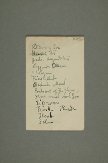 Edvard Munchs lister over egne kunstverk. Det dreier seg om utstillings- og pakkelister, med og uten priser. 15 objekter med tekst er tilgjengelige i det digitale arkivet.