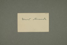 «Edvard MunchFødt år1863 Maler,EkelyprSkøien,Nedre Ramme,Hvitsten. Ekely,Hoffpr.Skøien»