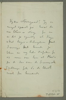 «Vil Du være så snil at{ … }bringe indlagte Brev og Notits op tilMorgenbladet – jeg synesMorgenbladets Pligt er at ta den ind – Morgenbladetindtog den eneste nedrakkende Kritik jeg fik –Men UdsJeg har aldrig bleven så udmærket behandlet i Pressen –»