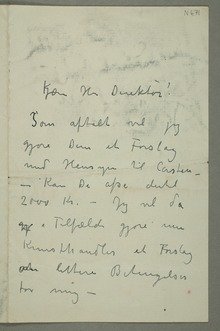 «Som aftalt vil jeg gjøre Dem et Forslag med Hensyn til lasten – – Kan De afse dertil 2000 Kr. – Jeg vil da gji Tilfælde gjøre min Kunsthandler et Forslag {at}om lettere Betingelser for mig –»