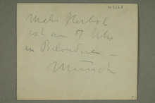 «Hiermitbezeugeerkläre ich daszEdvard Munchlange von einer Nervösitet gelitten hat whelche, wann er müde wird, auf verschiedene Weise hat ihm geplagt – Das letze Jahr hat er überangesträngt gewesen und hat viele Schwimmelanfälle gehabt Gesellschaftsleben müdet ihm sehr – ebenso Geschäfte. Beide diese Dinge ist deswegen für schadelich fürseine Gesundheit ihm, so er von Rücksicht zu seine Gesundheit vorl vorläufig sich abhalten musz (s)L. Dedichen»