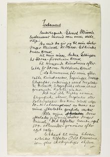 «UndertegnedeEdvard Munch bestemmer herved som min siste vilje:»